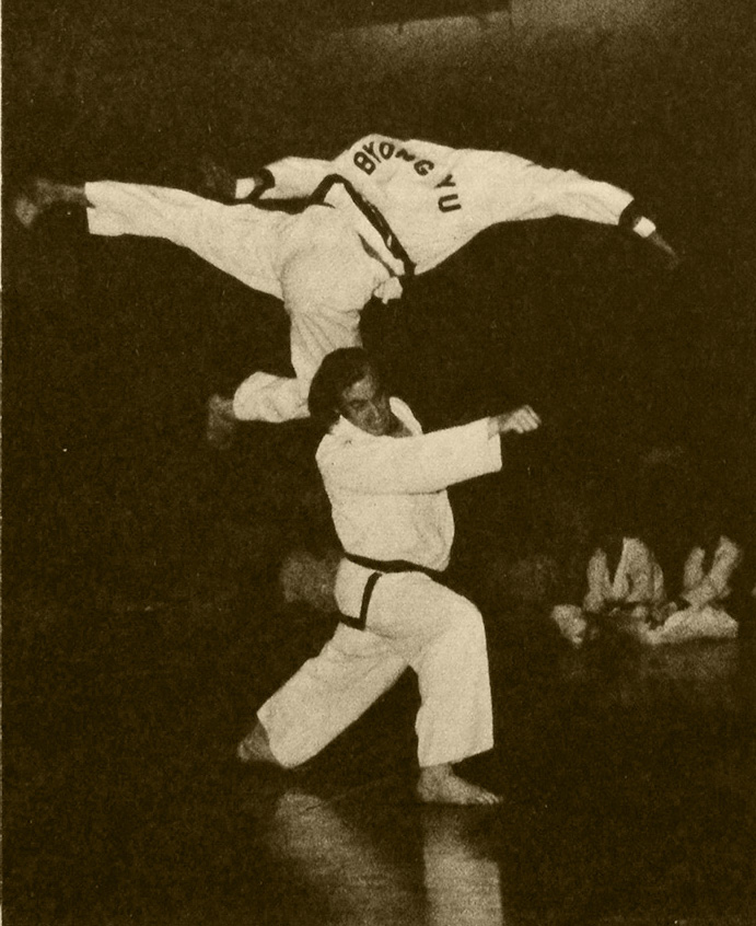 In the Lightweight finals, California’s Byong Yu bested St. Louis’ Walt Bone 2-1 in a match laden with impressive kicking and jump kicking combinations. The Middleweight finals pitted another Californian. John “The Giant Killer—Natividad against Chicago’s young Steve Kijewski. Both fighters battled to a 1-1 deadlock. In overtime, Kijewski lashed out with a fast roundhouse kick to the head to win the match. The Light-Heavyweight division finals featured Mexico City’s Travis Everitt against the powerful Jeff Smith of Washington, D.C. Smith was more cautious in this match than his usual self as he was not familiar with the style of Travis Everitt, who is probably Mexico’s most experienced active competitor. Smith, however, pulled it out in the closing seconds with a heel kick to the head. Final score, 1-0. In the Heavyweight Division Finals Roger Carpenter, an experienced champion from Wichita, Kansas, met Chicago’s Bill Josaitis. Josaitis is a newcomer to the national tournament scene but held the experienced Carpenter to an-other 1-1 tie. In overtime, after a series of hard clashes, Josaitis won the match with a Well-controlled back fist to the head.
